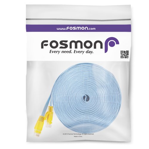 Fosmon (50 Feet - Light Blue) RJ45 CAT6 Snagless Ethernet Patch Cable [FLAT Tangle Free] - Ultra Speed Gigabit - Modem / Router / LAN / Printer / MAC / Laptop