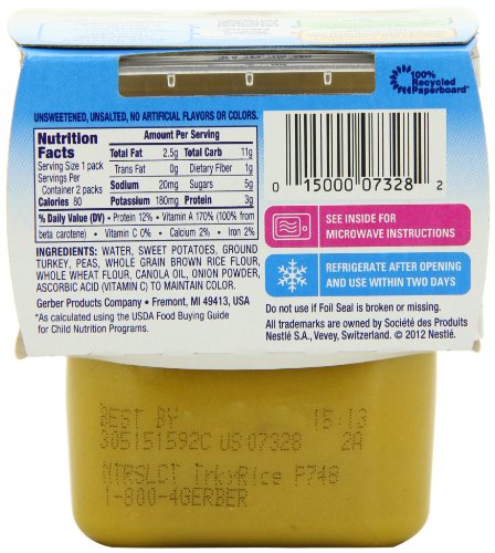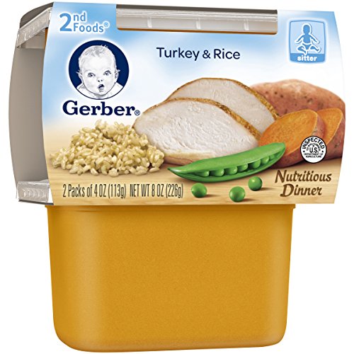 Gerber 2nd Foods Turkey Rice, 4 Ounce Tubs, 2 Count (Pack of 8)