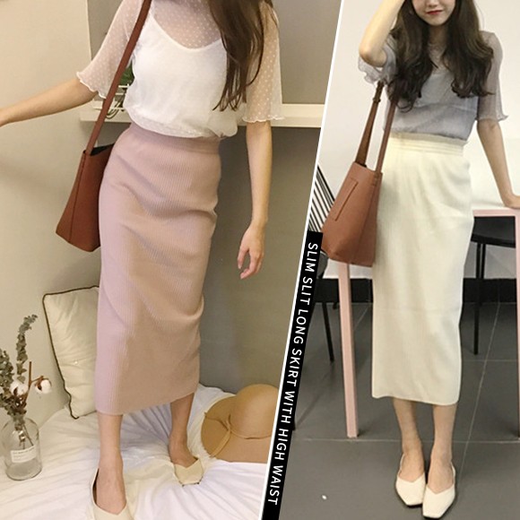 リブ素材のタイトフィットデザインでスタイルアップ効果抜群のタイトスカートです!