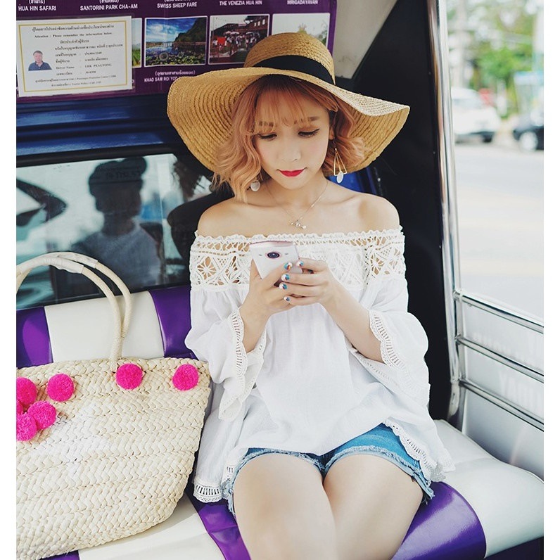 ショルダー部分がレースになっており、可愛らしい印象になってます。