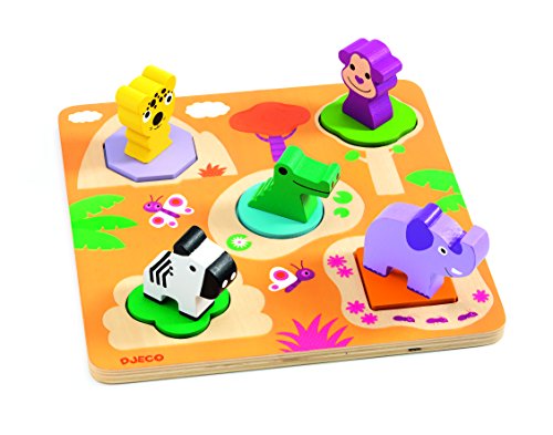 This first wooden puzzle has 5 character shapes that make playing with it fun. Comes in colorful box foor storage and to present as a gift.