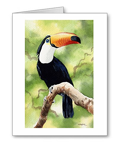 -. Feature : Toucan artwork by watercolor artist DJ Rogers. / Note card size is 4.25 x 5.5 inches / Matching white envelopes included. / Note cards are blank inside for your personal message. / Suitable for framing.