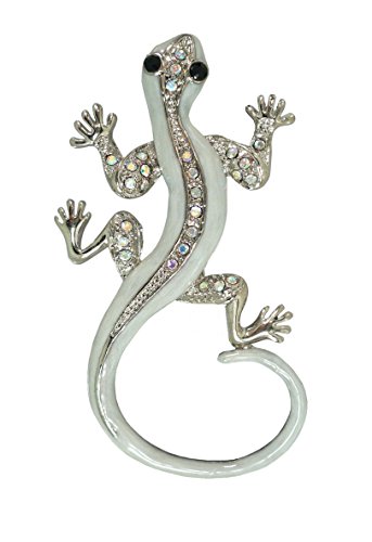 -. Title : Horrorific Halloween Rhinestone White Silvertone Salamander Pin Brooch 46