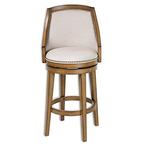 -. Brand : Fashion Bed Group -. Feature : Seat height: 30 in.; Dimensions: 23W x 21D x 45.63H in. / Seat width: 23 in. / Wood frame with seat upholstered in putty fabric / Acorn finish / Barrel-shaped backrest -. Label : Fashion Bed Group -. Manufacturer : Fashion Bed Group -. MPN : C1X100 -. PackageQuantity : 1 -. PartNumber : C1X100 -. ProductGroup : Furniture -. ProductTypeName : HOME_FURNITURE_AND_DECOR -. Publisher : Fashion Bed Group -. Studio : Fashion Bed Group -. Title : Fashion Bed Group Charleston 30 in. Swivel Bar Stool - Acorn