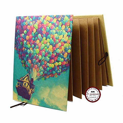 T-HAOHUA Hand Made Hardcover Kraft Paper Folding Photo Album,Pixar Up Movie Theme DIY Photo Album,Anniversary Scrapbook,Wedding Photo Album