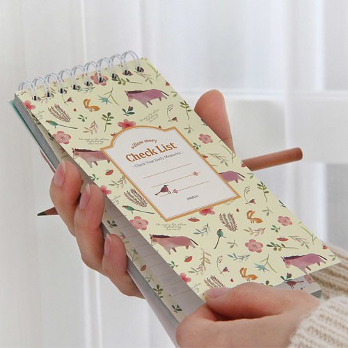 -. Feature : Contains 96 pages for you to take notes with. / Fits nicely in front of your keyboard or Laptop, without cluttering up your desk space. / Perfect for checking your daily memories. / Size : 3.34 X 6.29 X 0.23 inches / Made in Korea
