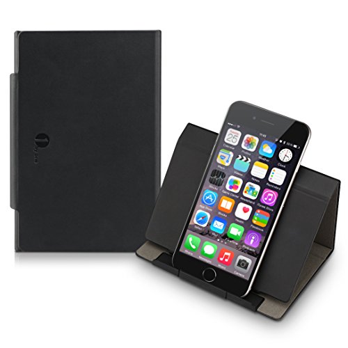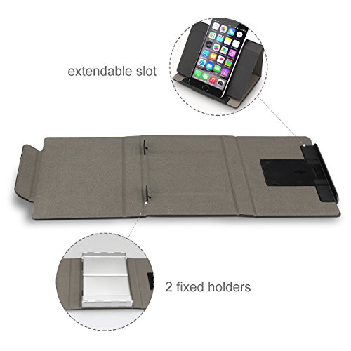 The extendable slot holds your smartphone or Ipad in portrait or landscape mode. It can both protect your device and serve as a great stand.