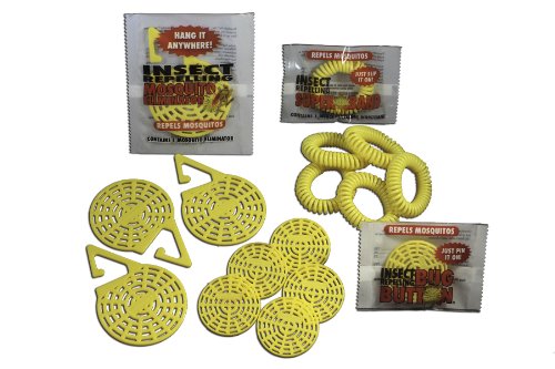 -. Binding : Lawn & Patio -. Brand : Evergreen Research -. EAN : 0652435390104 -. Feature : Insect Repellents lasts for up to a full week / Chemical DEET free / One size fits all / Eliminates the need for messy lotions or oils / Waterproof -. Label : Evergreen Research -. Manufacturer : Evergreen Research -. Model : SuperBand+ Combo Pack -. NumberOfItems : 1 -. PackageQuantity : 1 -. ProductGroup : Lawn & Patio -. ProductTypeName : OUTDOOR_LIVING -. Publisher : Evergreen Research -. Studio : Evergreen Research -. Title : Insect Repellent Combination Pack with SuperBand Bug Button and Mosquito Eliminator -. UPC : 652435390104