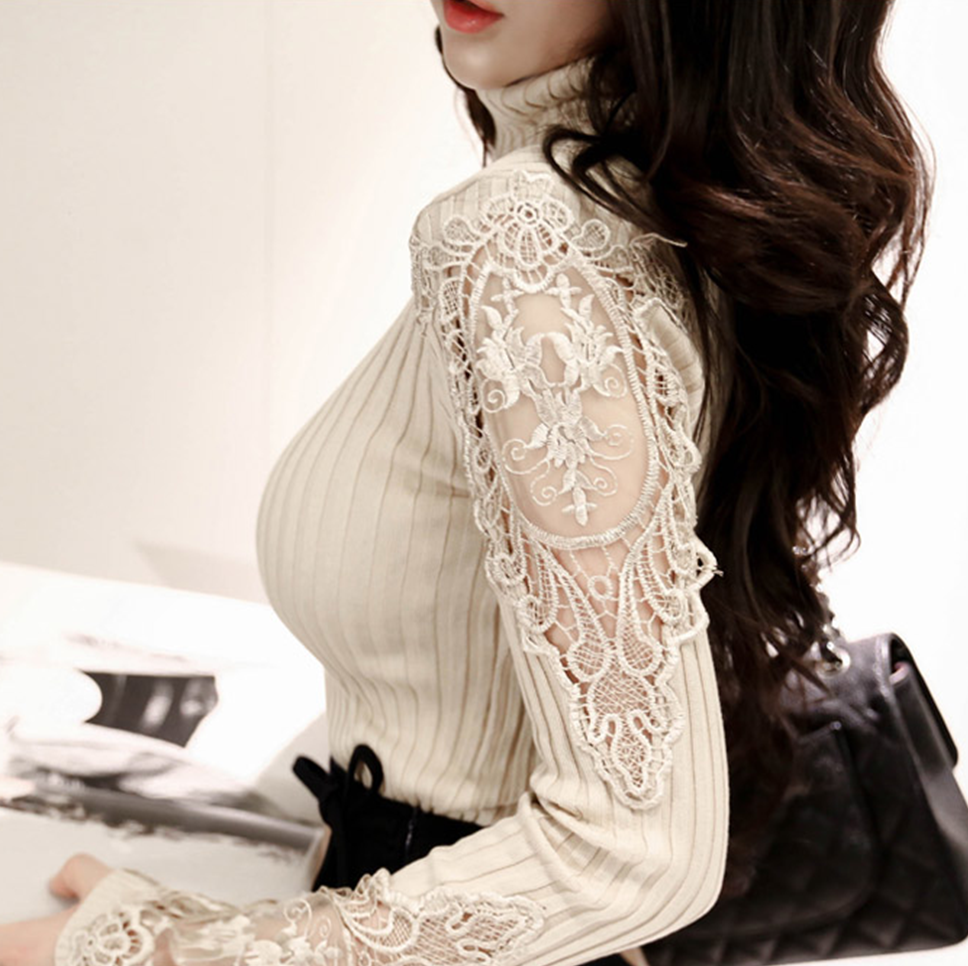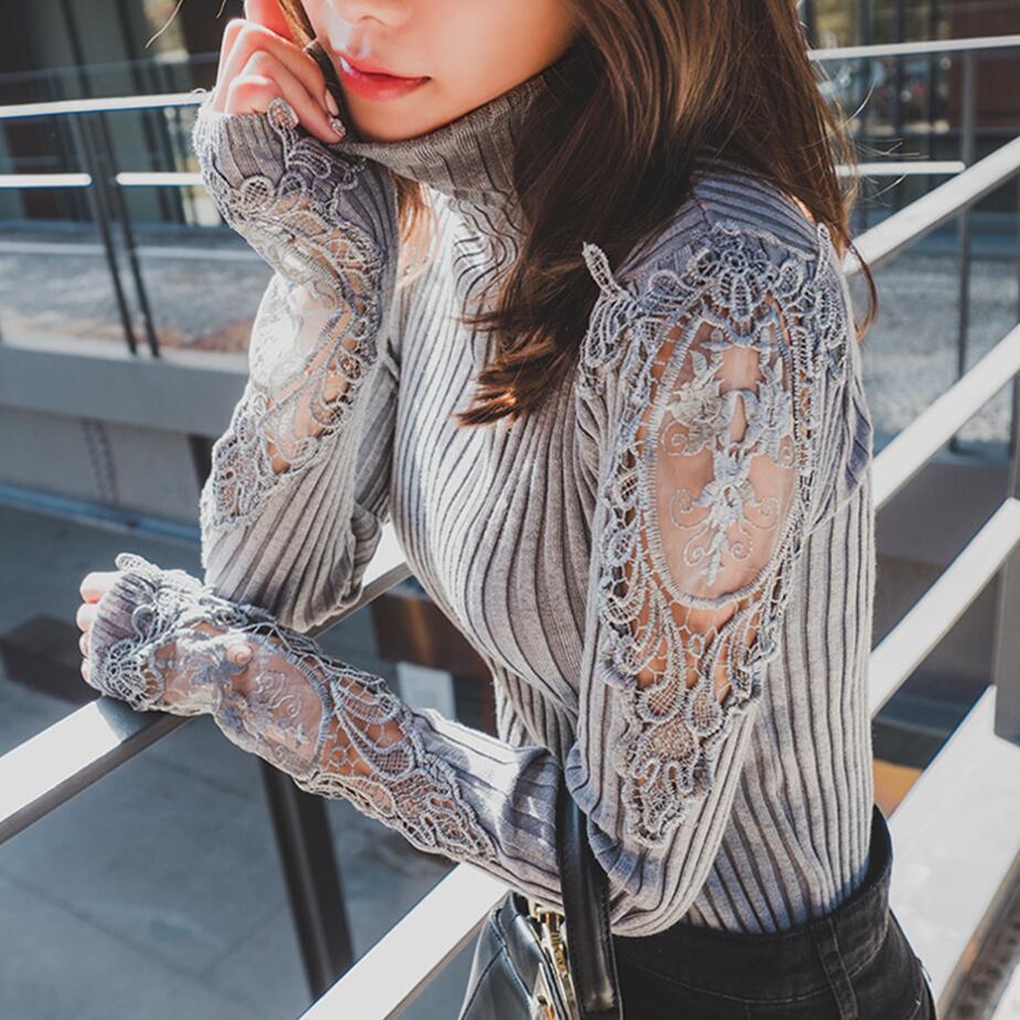 腕と手首にシースルーの花柄刺繍が施してありとてもエレガントなセーターになっています♡