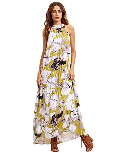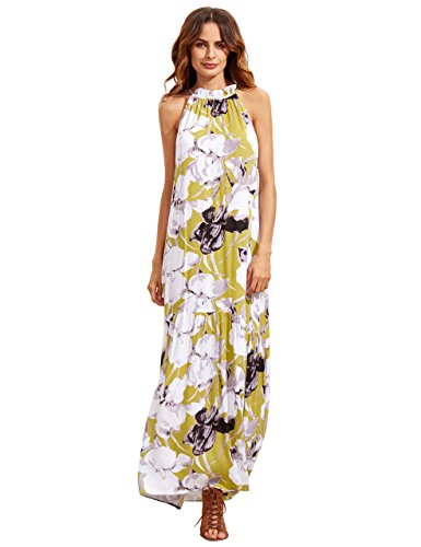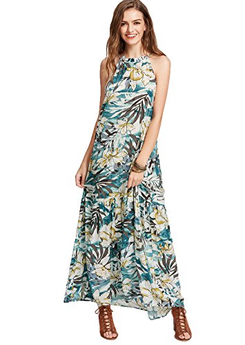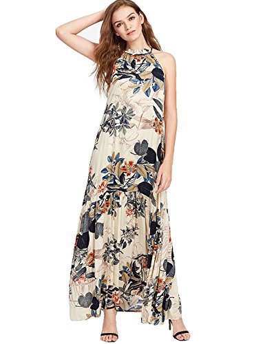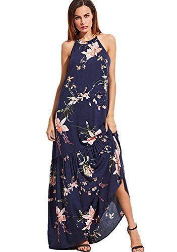 Sleeveless, Halter Neck, Loose Swing, Floor Length.Unique tailoring to make each one distinctive features.The printing of the actual item may vary slightly differ from the images.Each one you get is unique