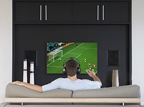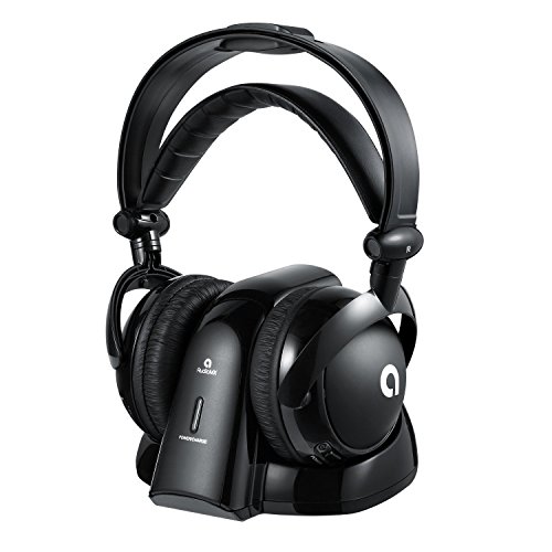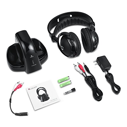 Wireless TV Headphones, AudioMX Over-Ear Digital RF Headphones with Transmitter and Charging Dock, Volume Control and Sound Isolation (RCA / 3.5 mm / 6.3 mm)