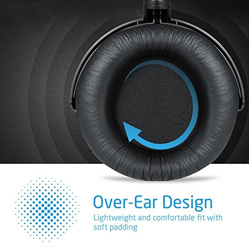 Supra-aural headset with adjustable soft-padded headband designed for maximum comfort; large over-ear headphones entirely enclose your ears, offer immersive listening experience with passive noise canceling; listen to music for hours and forget you are even wearing them