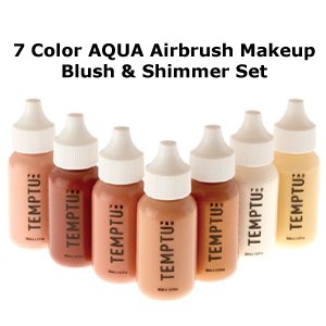 An improved 'Ultra Matte' water-based formula that provides opaque yet natural matte coverage. Made with Carnauba Milk, Aqua imparts a soft matte finish that's never dry or uncomfortable. Long lasting for hours under the studio lights, Aqua Airbrush is a favorite for on-air talent at Fox NewsTM, CNNTM, ABCTM, and more. The 7 Colors of AQUA the Blush & Shimmer 1 Ounce Set: Plum Beige Peach 113, Egyptian 114, Blush 115, Deep Rose 116, Silver 400, Gold 401 & Bronze 402