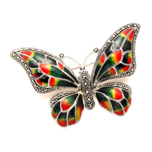 -. Title : Sterling Silver Multi Color Enamel Butterfly Pin w/Marcasite Stones