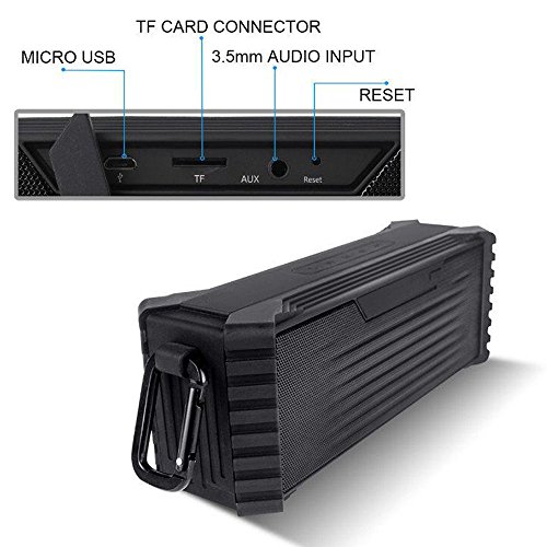 -. Feature : ● The latest bluetooth 4.2 version: Fast connection, the connected distance range up to 33 feet / ● 20W power output: Dual speaker, 10W*2 output, takes you enjoy the HIFI crystal clear sound and incredible super bass / ● Big power battery: Built-in rechargeable 2600mAh lithium-ion polymer battery to support the big output and high quality music sound / ● Fully compatible feature: This bluetooth speaker can connect to all kinds of audio devices (such as mobile phones, PC, ipad, MP3 player, cassette player, CD player, radio, etc.) / ● New card read function: Besides the SD/TF card, 3.5mm AUX, Hands free call, USB, the speaker added a new card read function