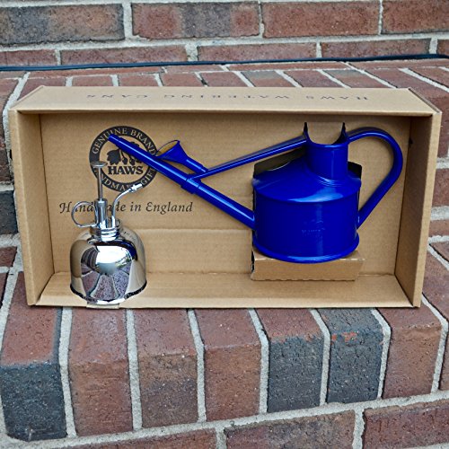 Haws Spray-N-Sprinkle Gift Box Set with Dark Blue Watering Can and Nickel Mister