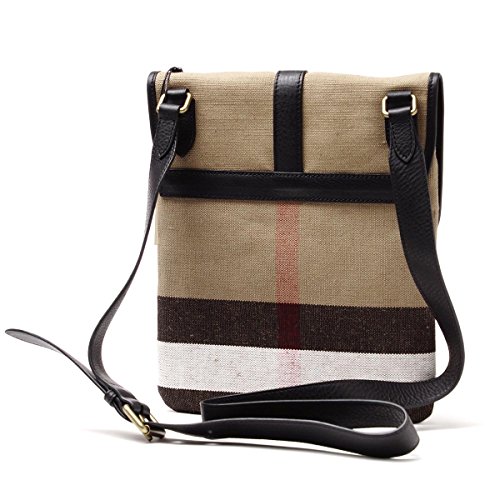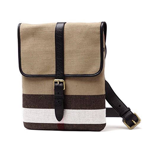 -. Title : Men's Everson Beige Canvas Plaid Check Messenger Crossbody Bag