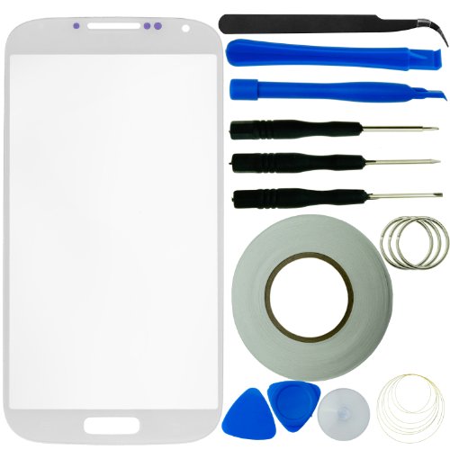 -. Title : Samsung Galaxy S4 Screen Replacement Kit including 1 Replacement Screen Glass for Samsung Galaxy S4 i9500 / 1 Pair of Tweezers / 1 Roll of 2mm Adhesive Tape / 1 Tool Kit / 1 ECO-FUSED Microfiber Cleaning Cloth...