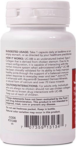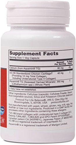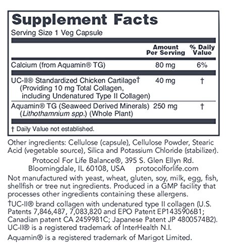 HOW IT WORKS: Joint-UC is an Undenatured (native) Type II Collagen that is derived from chicken sternum. Due to its unique configuration, it is capable of interacting with the normal immune system when administered orally. Joint-UC has been clinically validated for its ability to help maintain healthy joints through the support of a balanced immune system response to everyday wear and tear.* Joint-UC is enhanced with Aquamin® Red Algae Minerals, a natural form of calcium and over 70 trace minerals.Protocol For Life Balance® is an A-rated GMP manufacturer of pharmaceutical grade dietary supplements created for healthcare practitioners. Our product line is comprised of effective, science-based formulations intended to address common nutrient deficiencies and support healthy physiological function. These formulations are based on the latest advances in nutritional science and incorporate trademarked ingredients of the highest quality. Our serving sizes are based on doses used in clinical trials and other published data, and the ingredients used in our products have been tested for efficacy in clinical trials and laboratory studies.