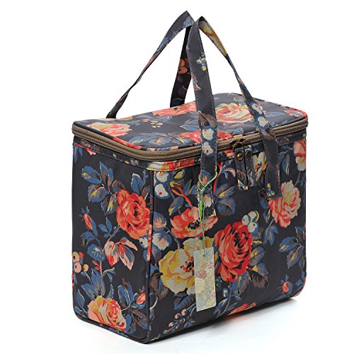 WONDERFUL FLOWER Medium lunch bags for women Insulated Picnic Bag lunch Box Bag (G01 Dark Navy)