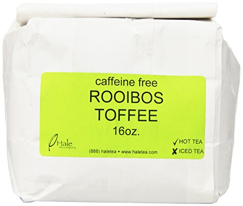 -. Binding : Grocery -. Brand : Hale Tea -. EAN : 0603932070655 -. Feature : 16-Ounces of Loose Tea / Toffee bits; Excellent for dessert / Naturally caffeine free; Serve hot. / Bulk food safe bag / Hale Tea Company based in Savannah, Georgia; Traces its roots back to a humble tea shop in London, England in 1872 -. Label : Hale Tea Company -. Manufacturer : Hale Tea Company -. NumberOfItems : 1 -. PackageQuantity : 1 -. ProductGroup : Grocery -. ProductTypeName : GROCERY -. PublicationDate : 2012-06-12 -. Publisher : Hale Tea Company -. Size : 16 Ounces -. Studio : Hale Tea Company -. Title : Hale Tea Rooibos, Toffee, 16-Ounce -. UPC : 603932070655