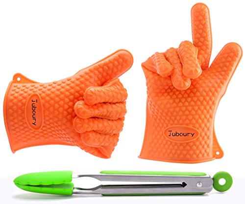 - ✔Super Value Pack--2 gloves and 1 tong included, FDA approved and BPA free BBQ/Grill gloves and tong combination suit for barbeque,oven,cooking,frying,baking.