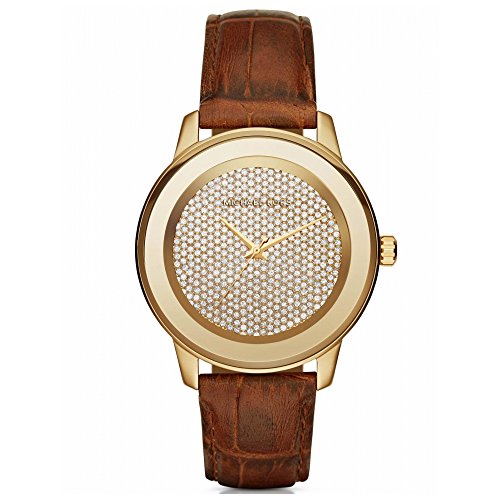 -. Title : Womens Mk2455 Kinley Brown Leather Glitz Gold Tone Watch