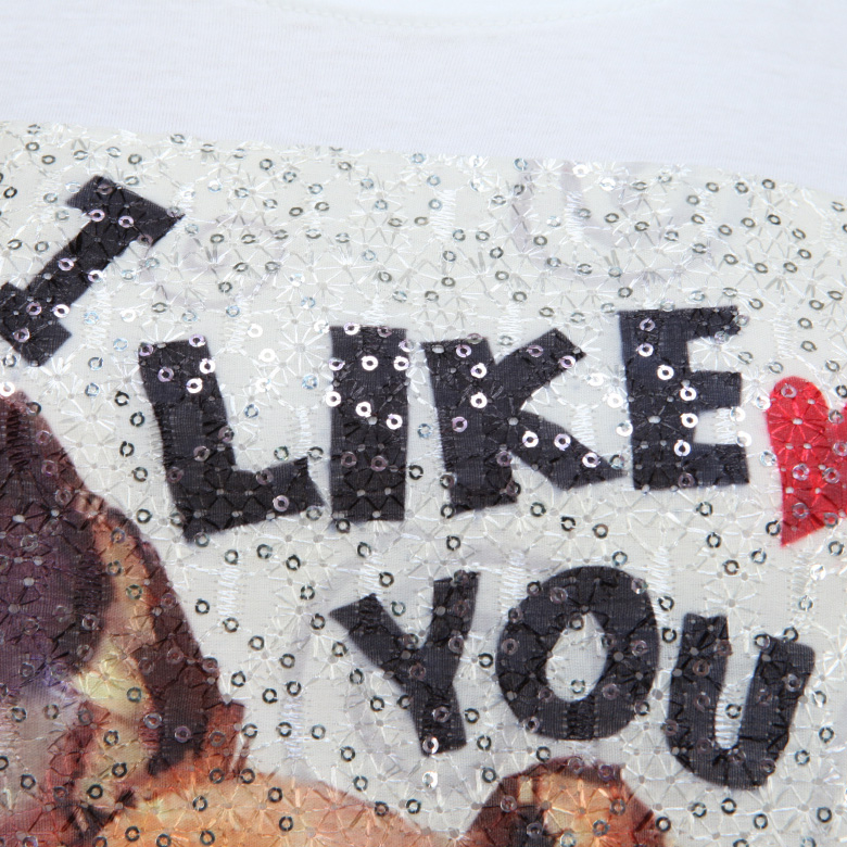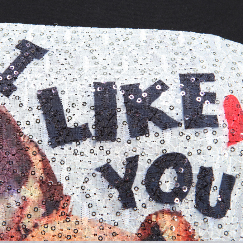 - 레이스와 스팽글의 조화가 돋보이는 티셔츠입니다