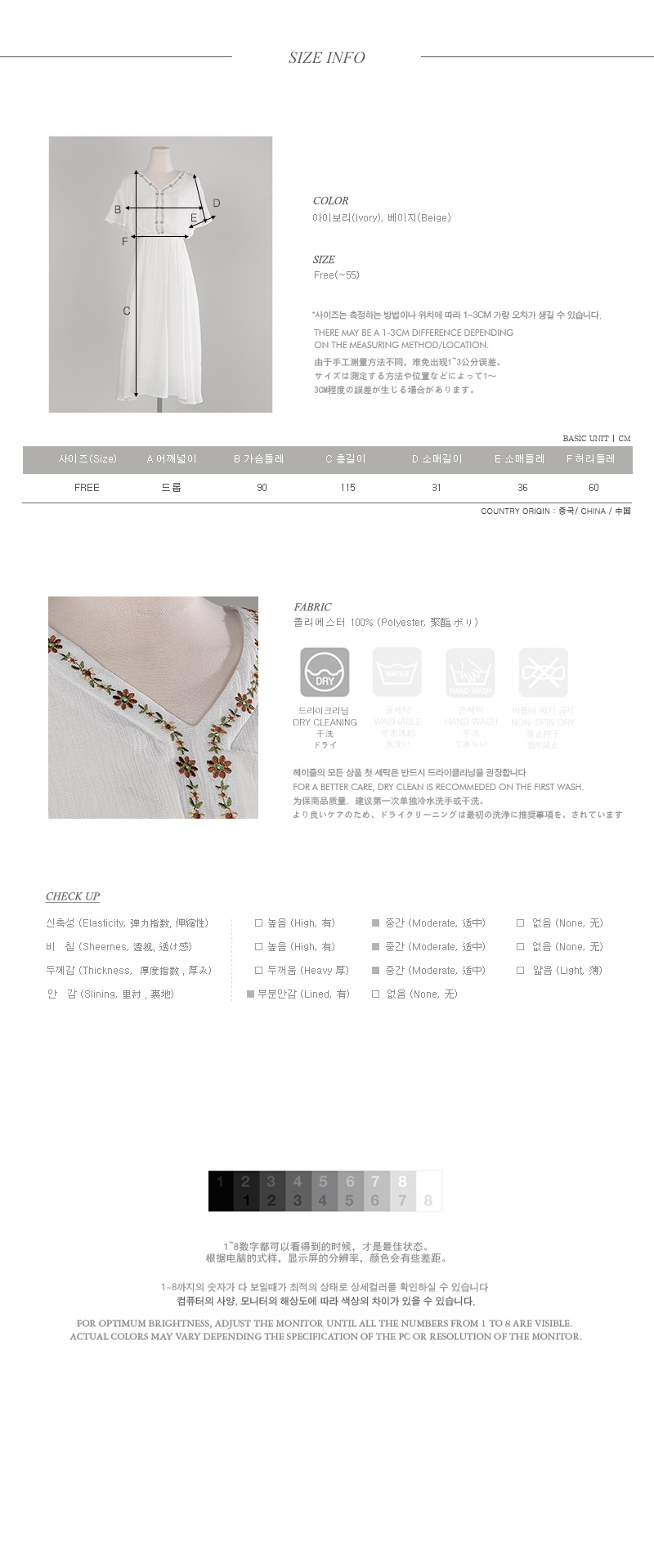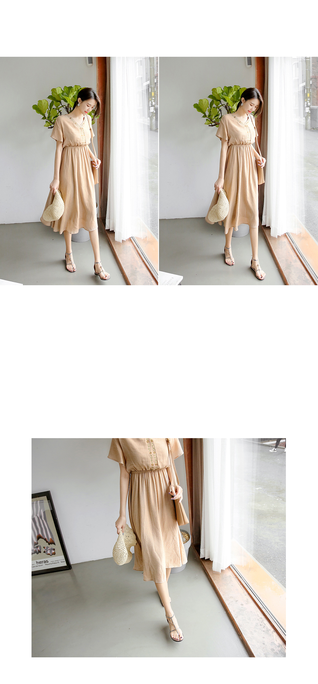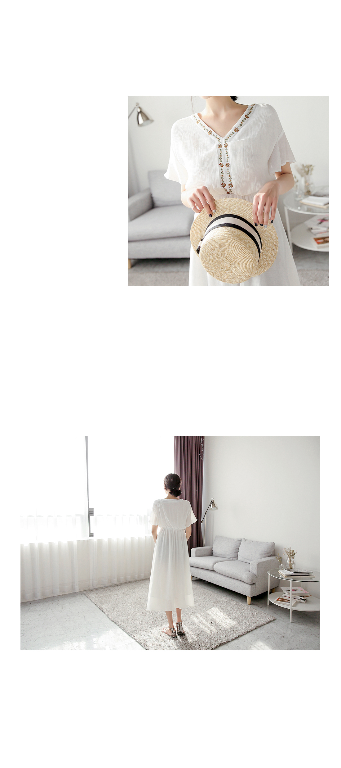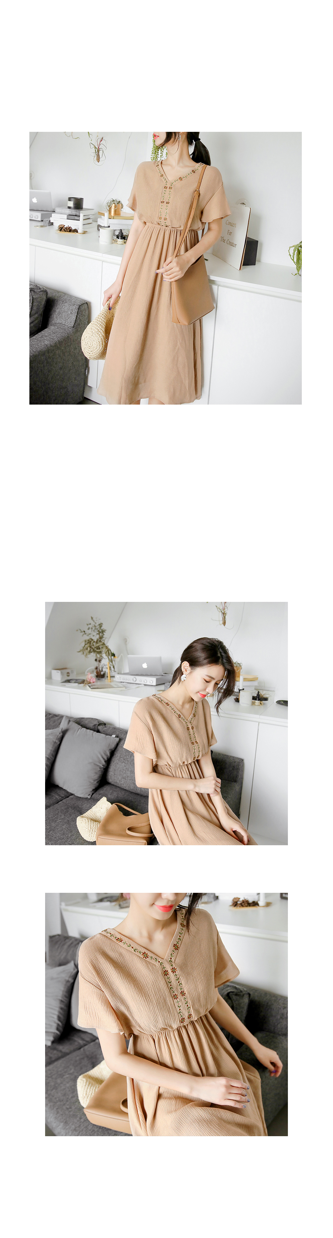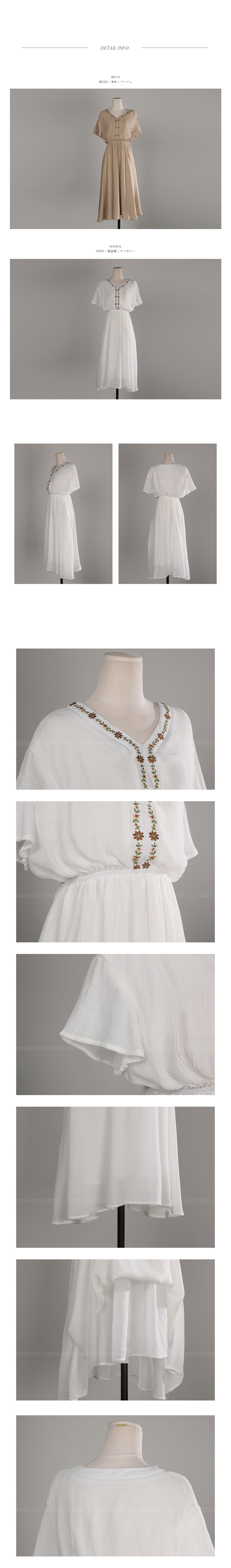 자수 디테일이 가미되어 보헤미안룩을 연출하기에 알맞은 원피스 아이템이예요^^ 여유있는 핏감과 허리에 밴딩처리로 누구든지 편안한 착용감을 선사해드리는 원피스 아이템이랍니다~ 적당한 소재로 봄부터 여름까지 스타일링 연출하기에 알맞은 원피스 아이템이예요~^^ 러블리하고 모던한 원피스 아이템을 찾고 계신다면 적극 추천해드려요~