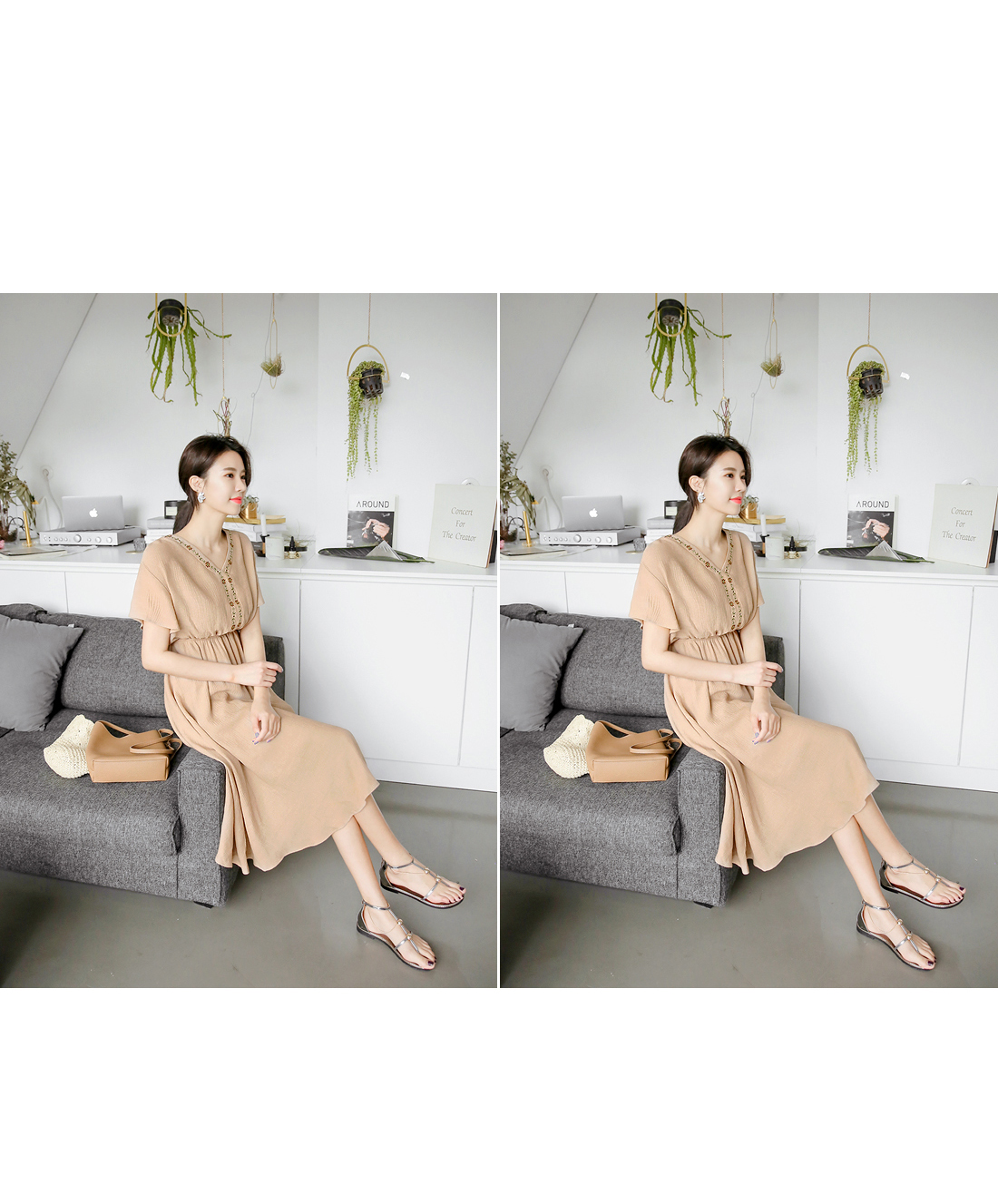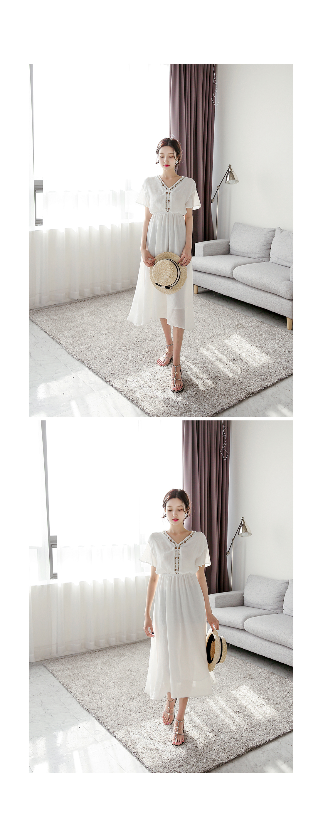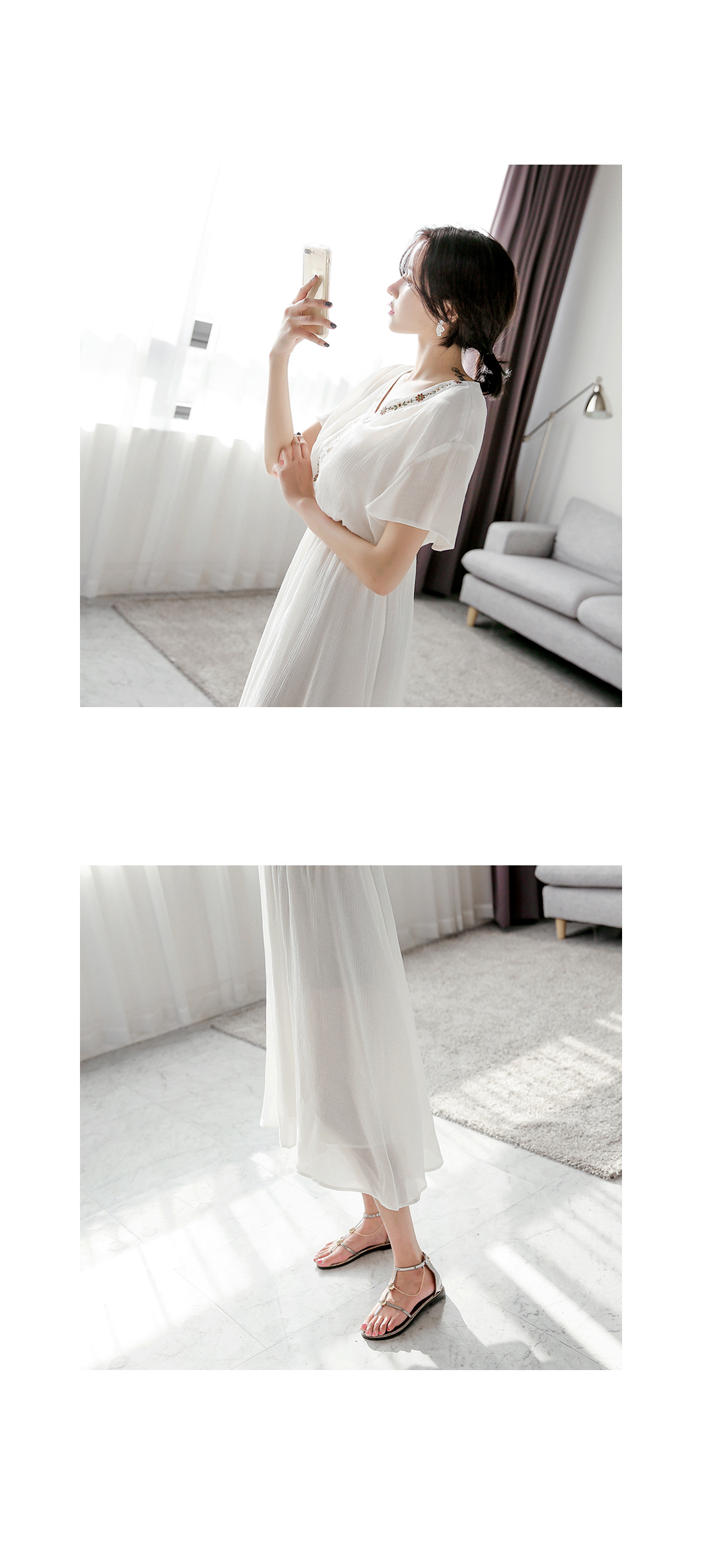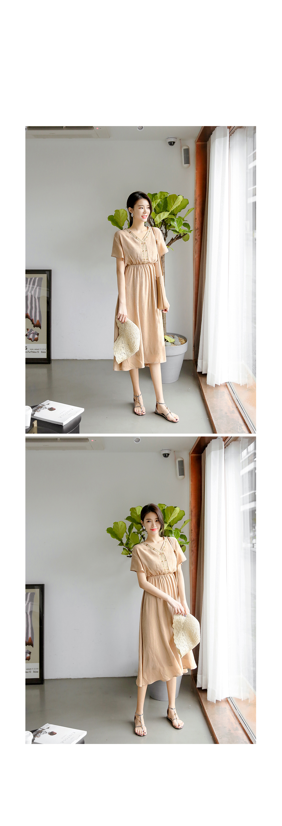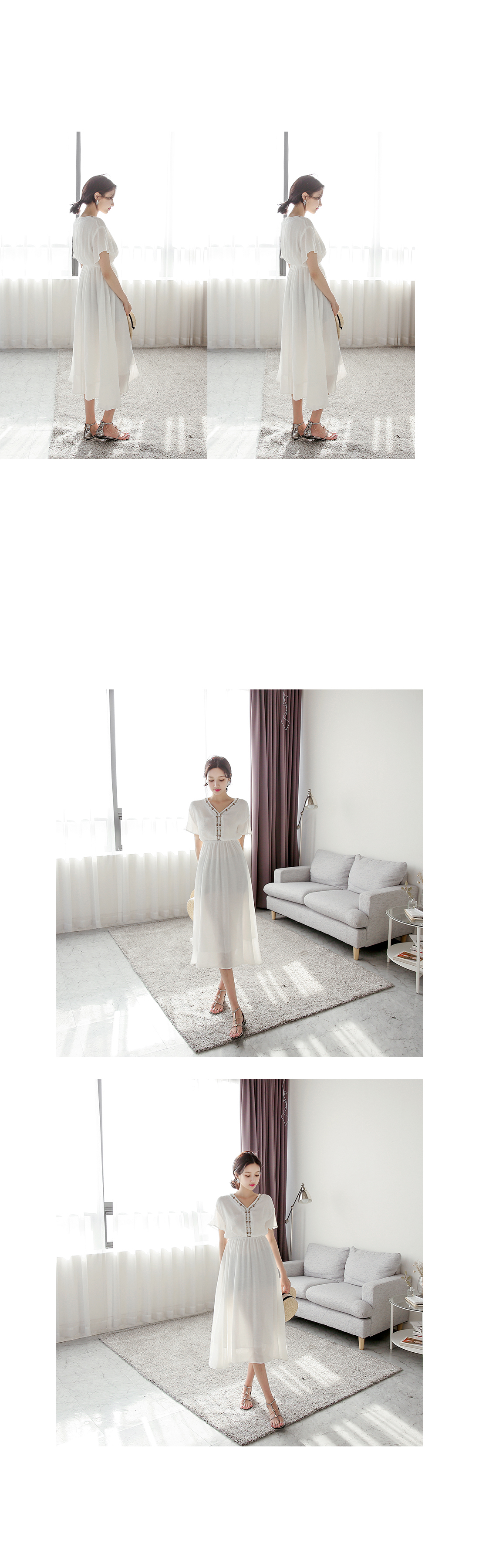 자수 디테일이 가미되어 보헤미안룩을 연출하기에 알맞은 원피스 아이템이예요^^ 여유있는 핏감과 허리에 밴딩처리로 누구든지 편안한 착용감을 선사해드리는 원피스 아이템이랍니다~ 적당한 소재로 봄부터 여름까지 스타일링 연출하기에 알맞은 원피스 아이템이예요~^^ 러블리하고 모던한 원피스 아이템을 찾고 계신다면 적극 추천해드려요~