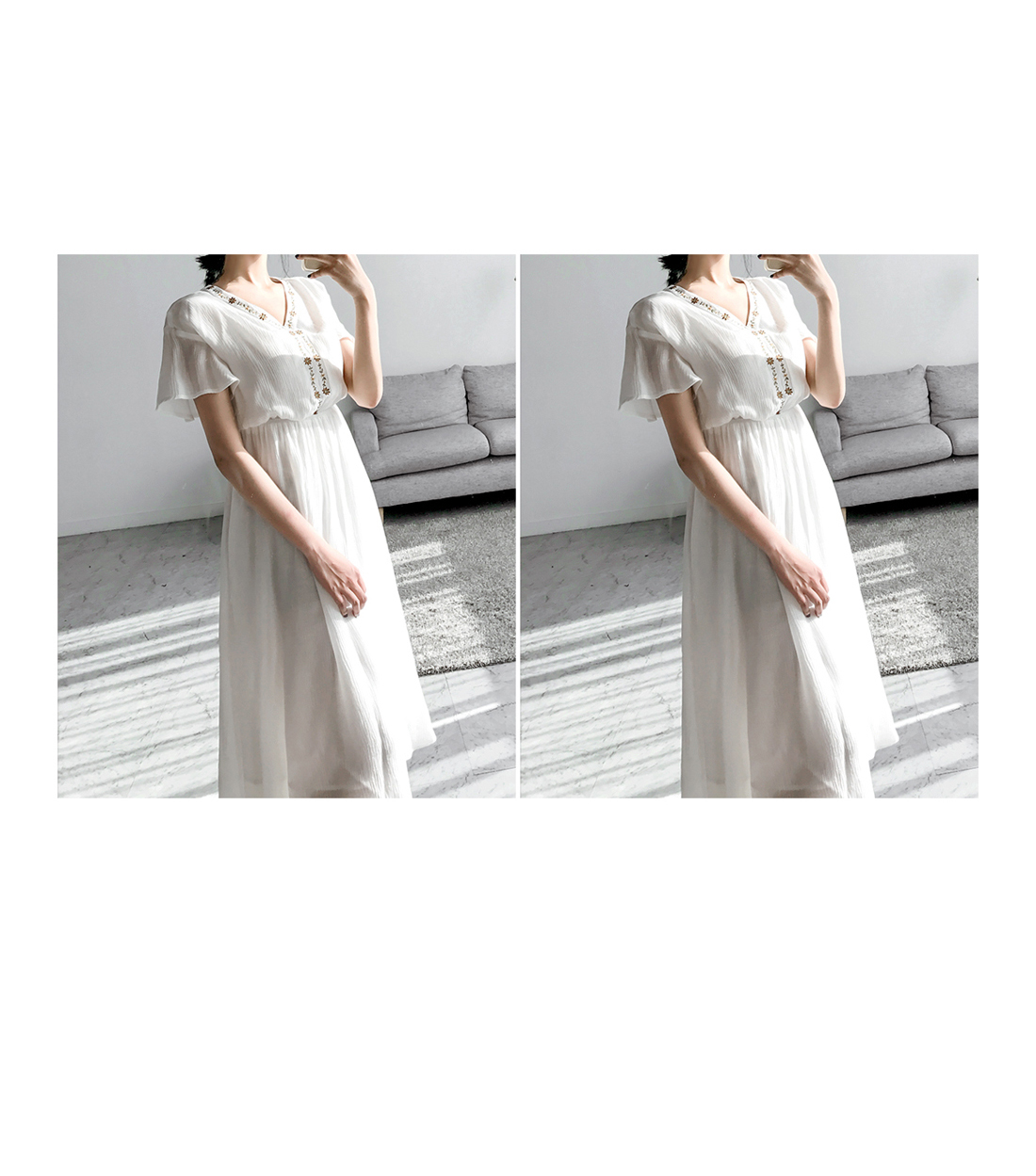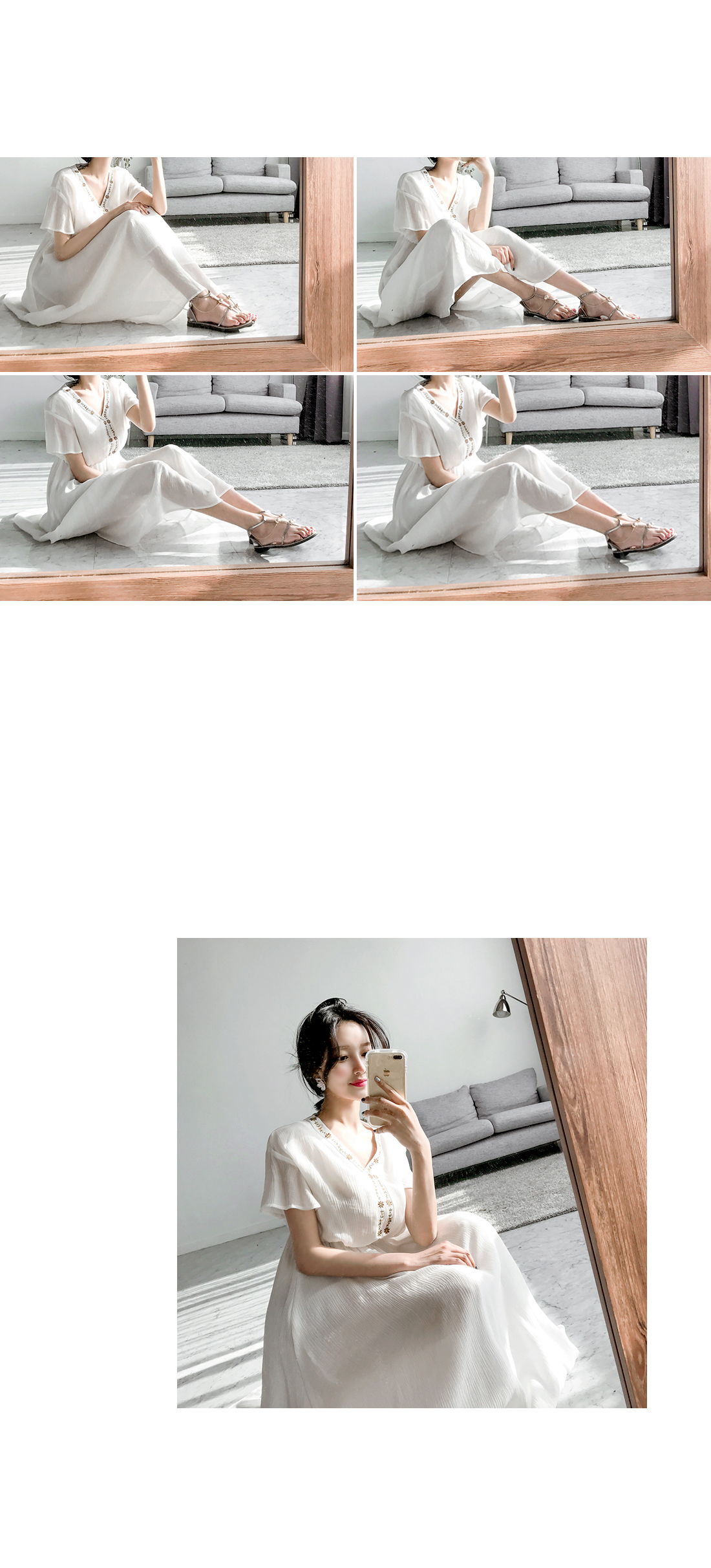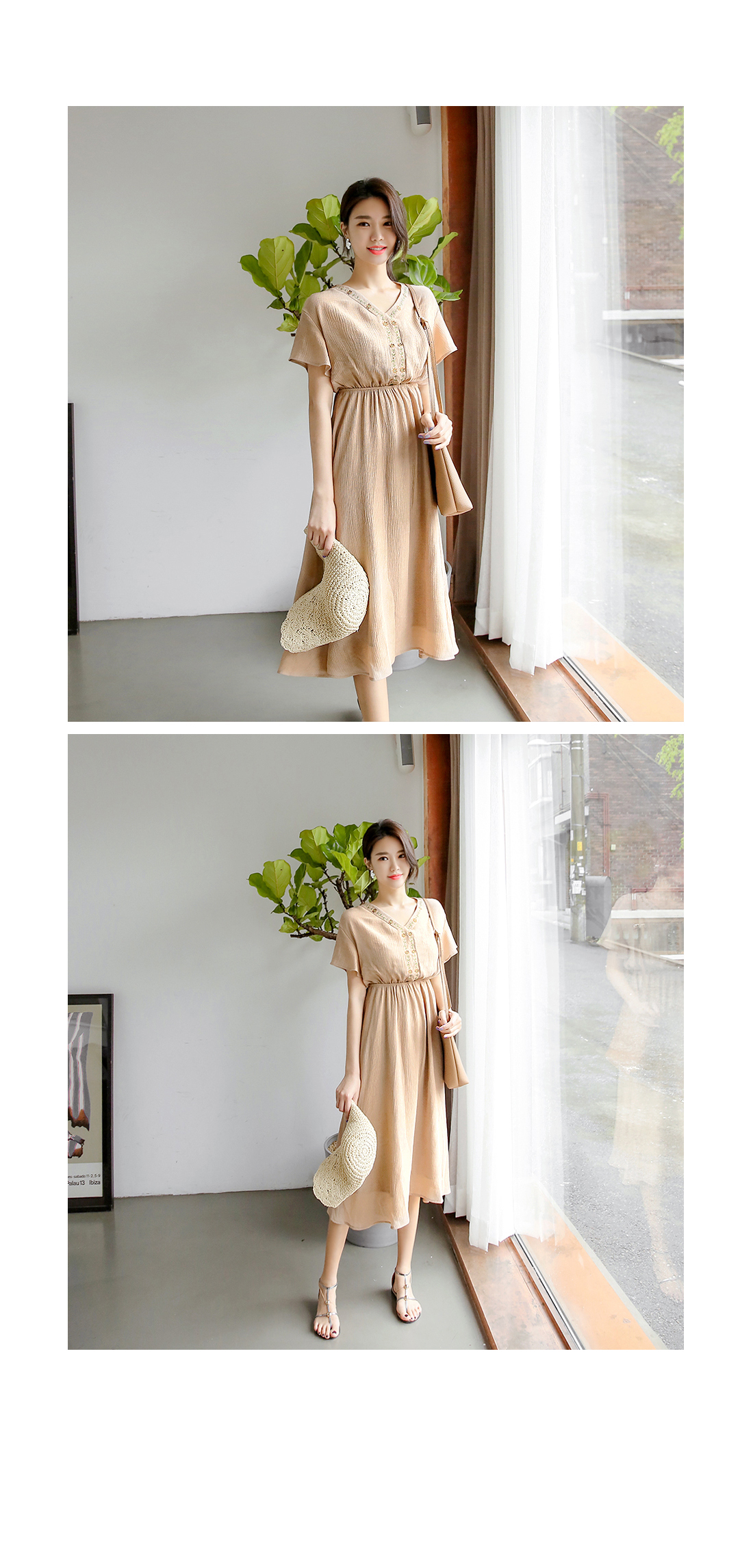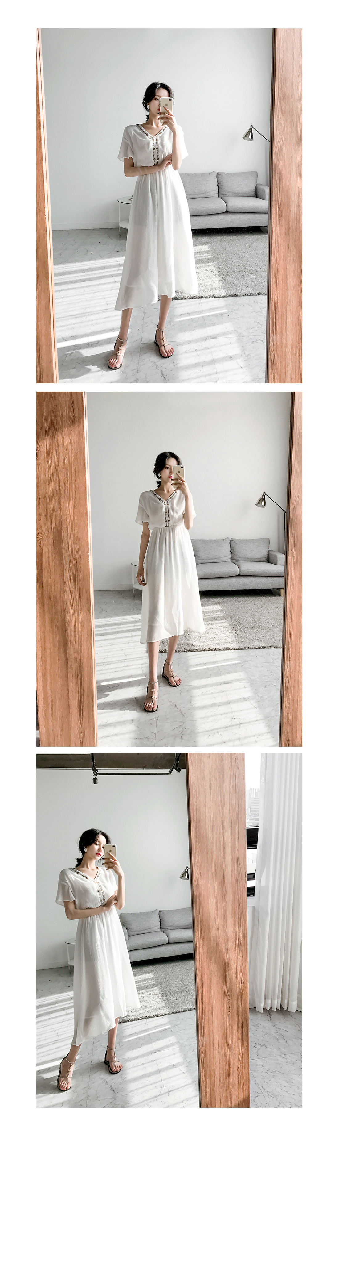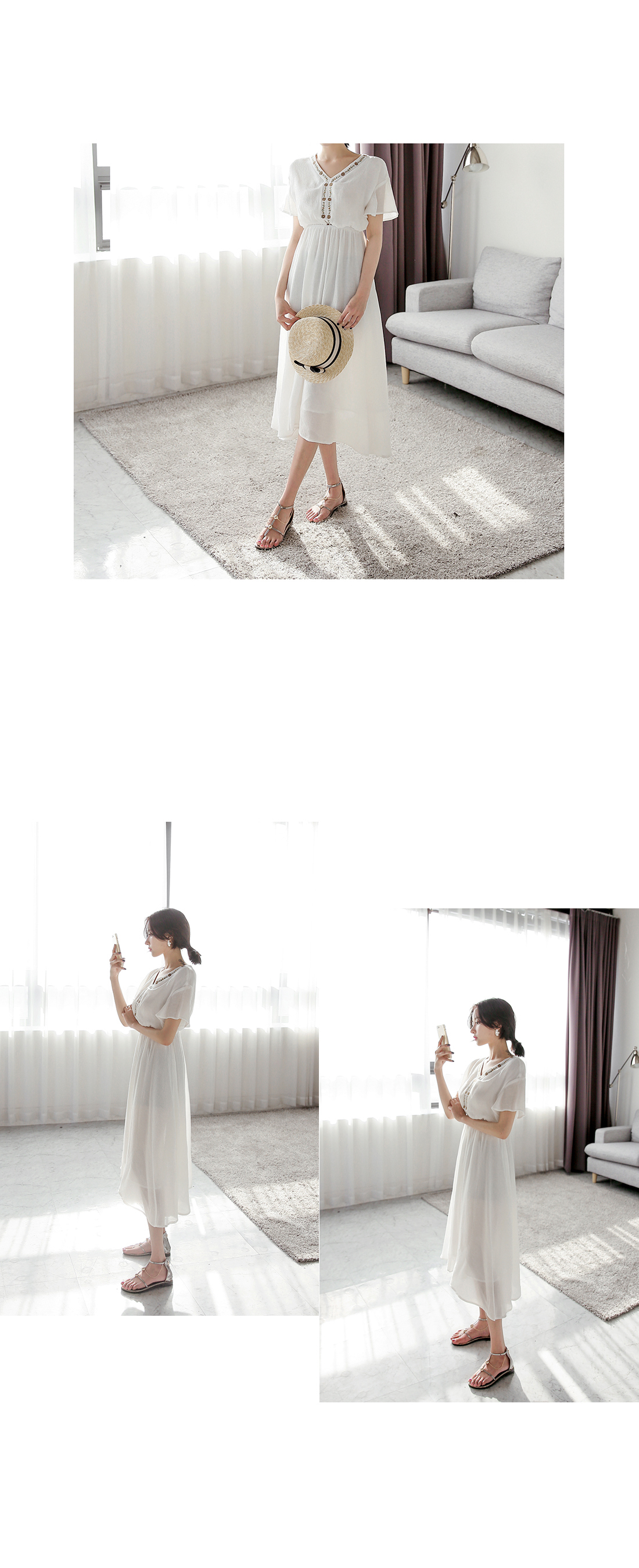 자수 디테일이 가미되어 보헤미안룩을 연출하기에 알맞은 원피스 아이템이예요^^ 여유있는 핏감과 허리에 밴딩처리로 누구든지 편안한 착용감을 선사해드리는 원피스 아이템이랍니다~ 적당한 소재로 봄부터 여름까지 스타일링 연출하기에 알맞은 원피스 아이템이예요~^^ 러블리하고 모던한 원피스 아이템을 찾고 계신다면 적극 추천해드려요~
