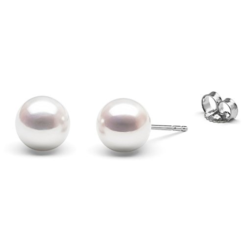 -. Title : HinsonGayle AAA GEM 7.5-8mm White Round Freshwater Cultured Pearl Stud Earrings (14K White Gold)