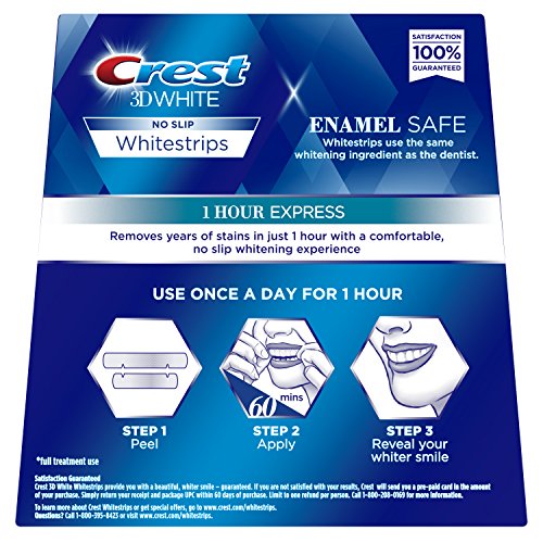 -. Binding : Health and Beauty -. Brand : Crest -. EAN : 0889714000441 -. Feature : Lasts9 months and beyond, full treatment use / Use once a day for 1 hour / Removes years of teeth stains in just 1 hour for a noticeably whiter smile. / Whitens teeth faster than ever, even when there's no time to plan. / Advanced Seal Technology's no slip grip stays put so you can talk and drink water while whitening teeth. -. Label : Procter & Gamble - HABA Hub -. Manufacturer : Procter & Gamble - HABA Hub -. NumberOfItems : 1 -. PackageQuantity : 1 -. ProductGroup : Beauty -. ProductTypeName : BEAUTY -. PublicationDate : 2016-07-21 -. Publisher : Procter & Gamble - HABA Hub -. ReleaseDate : 2016-07-18 -. Studio : Procter & Gamble - HABA Hub -. Title : Crest 3D White 1 Hour Express Dental Whitening Kit with 7 Treatments -. UPC : 889714000441