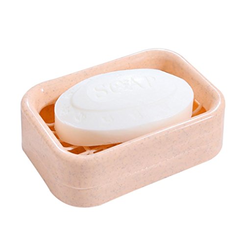 -. Title : Inkach Water Draining Double Deck Soap Dish Holder Case Soap Stand Box Bathroom Pink