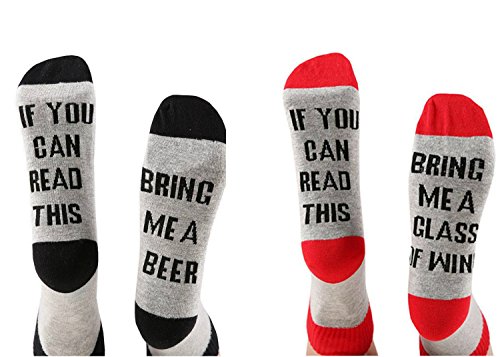 -. Binding : Apparel -. Brand : U-Zomir -. Department : womens -. Feature : ONE SIZE FITS MOST: Combed cotton will keep your feet toasty warm; Fits US sizes 6 to 11; ankle height socks / SEWN IN LETTERING, NOT P.R.INTED: All the words are stitched directly into the socks instead of an iron-on transfer, so it won't peel off. Novelty socks that will make your friends giggle, here you go! Incredibly Comfortable, you have to feel them to believe it! They may be novelty socks, but you'll love to wear them all the time! / FUN GIFT: Perfect hostess or housewarming gift, birthday present, gift for a wine lover, party favor, white elephant gift, a secret santa gift exchange idea, or present for yourself. / COMFY MATERIAL: Machine washable, 80% Combed Cotton, 15% Spandex, 5% Elastic / SATISFACTION GUARANTEED - We offer 30 days money back and Prompt customer service. Shop with Confidence. The saying will crack you up!If you are not happy with your purchase for any reason, we will send you a full refund. -. IsAdultProduct : 0 -. Model : UZO-B076P9DZYM -. ProductGroup : Apparel -. ProductTypeName : SOCKSHOSIERY -. Size : One fit all -. Title : IF YOU CAN READ THIS Funny Saying Knitting Word Combed Cotton Crew Wine Coffee Beer Socks for Men Women