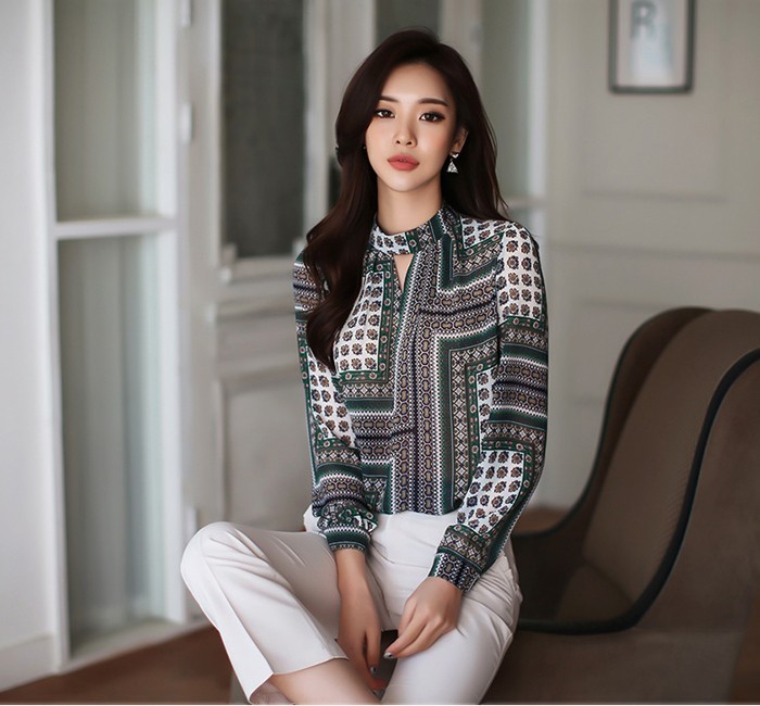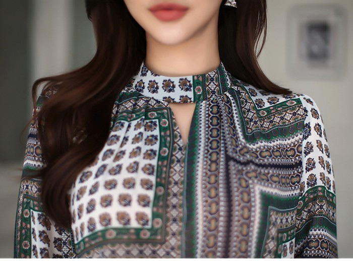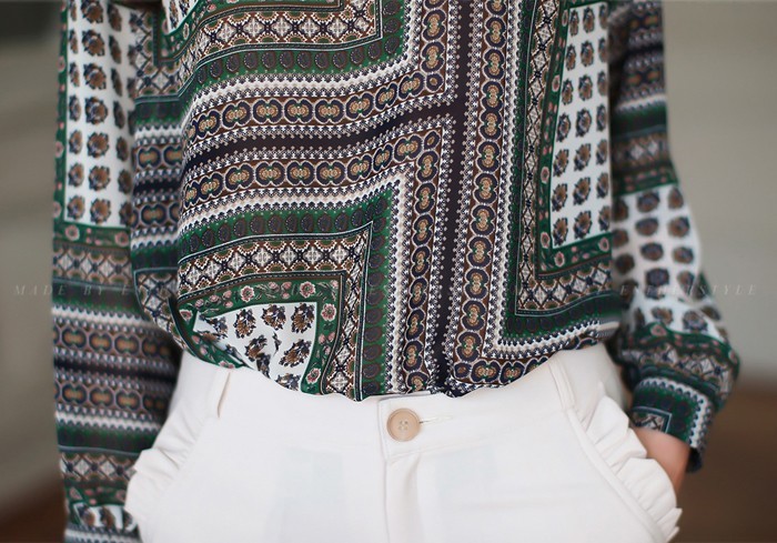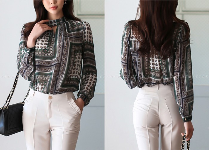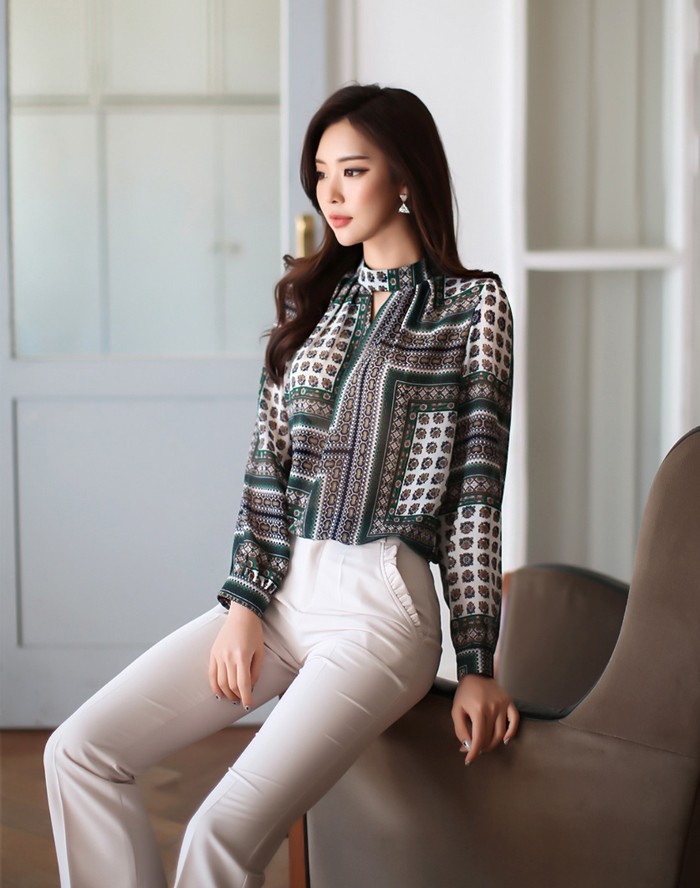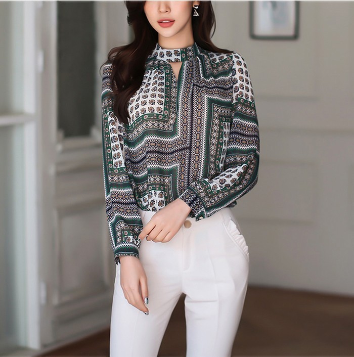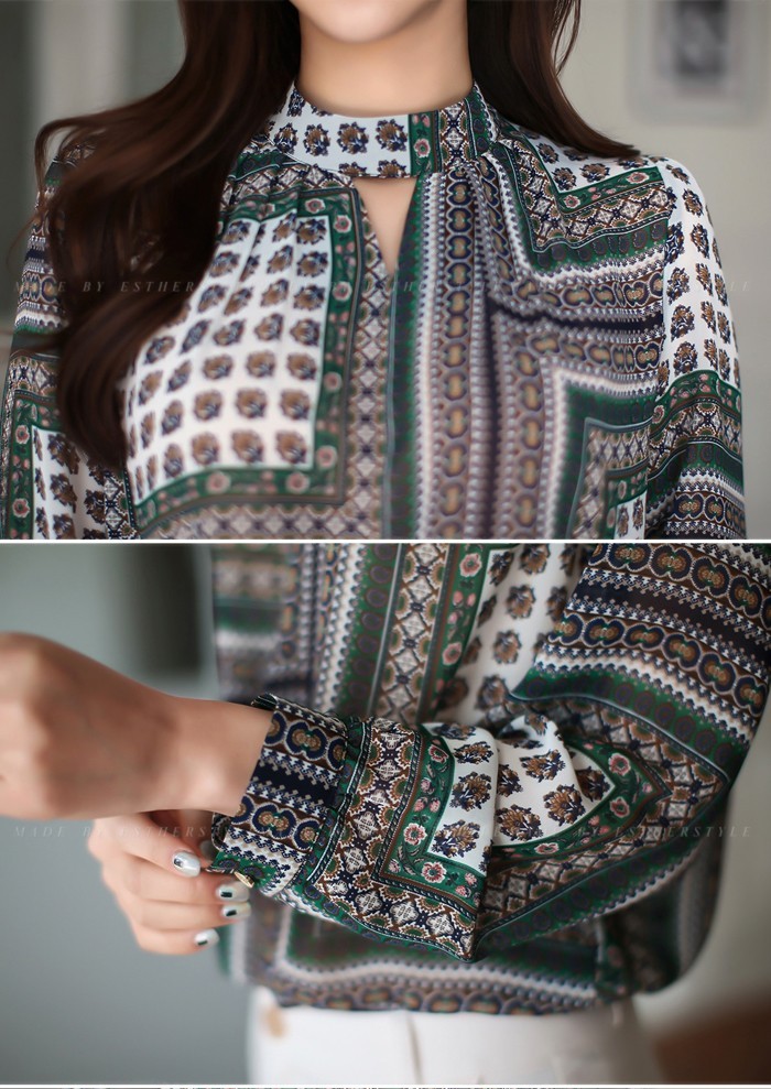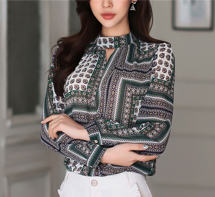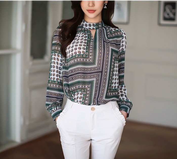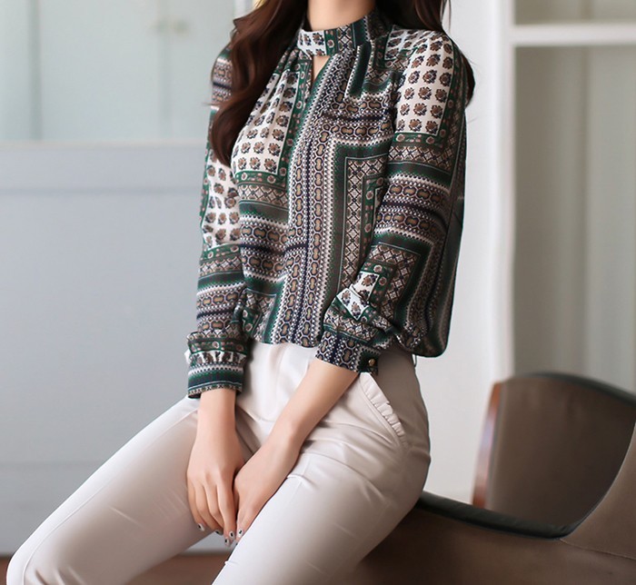 商品名:ブラウス プルオーバー 長袖 柄