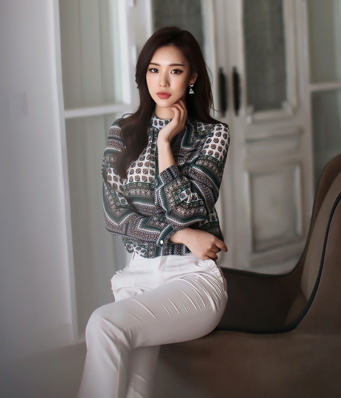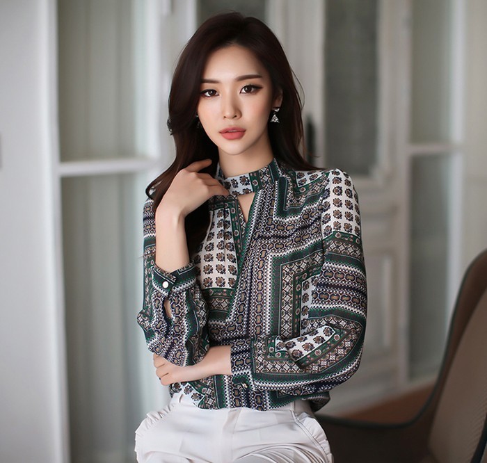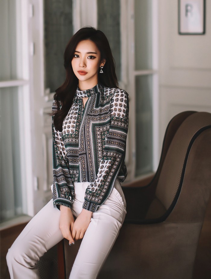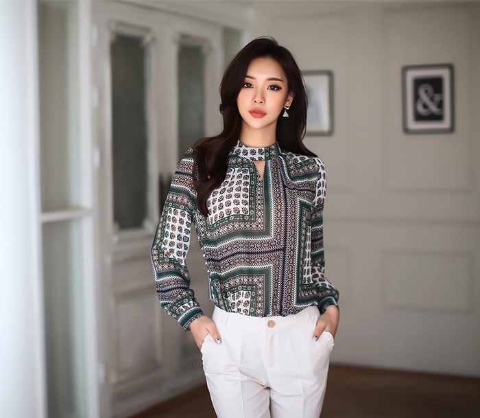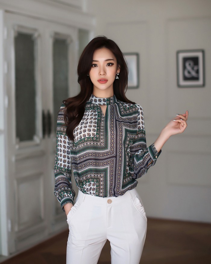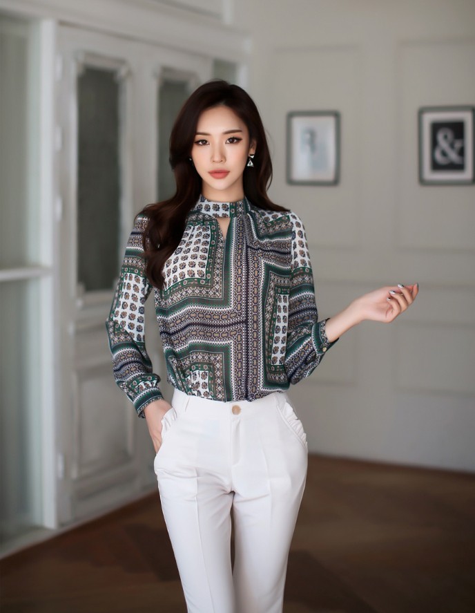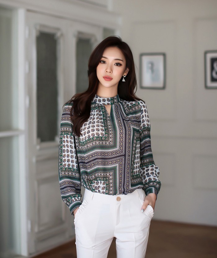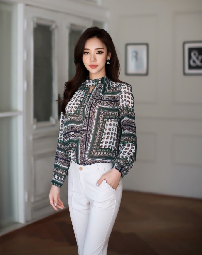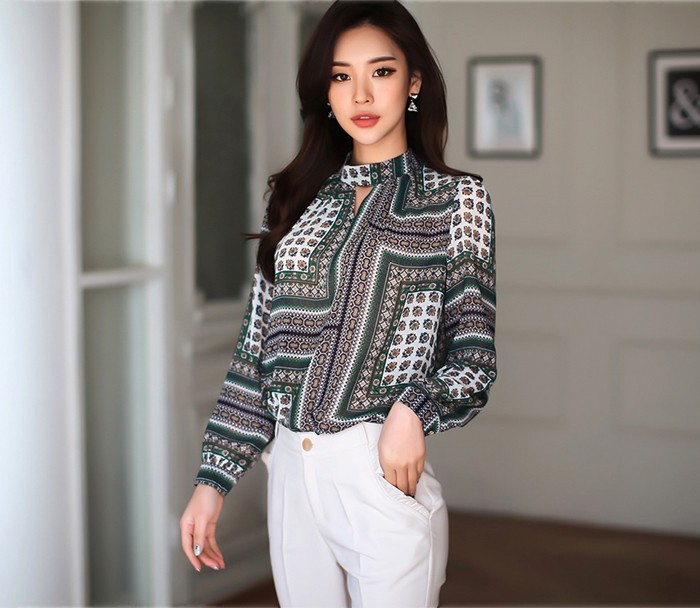 商品名:ブラウス プルオーバー 長袖 柄