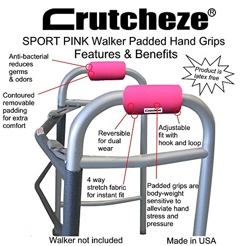 Crutcheze Sport Pink Walker Padded Hand Grip Covers Made in USA...