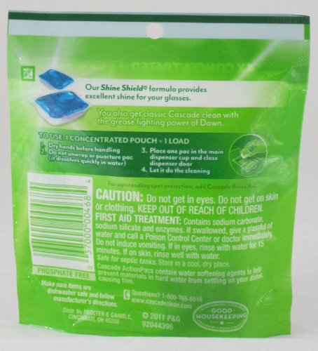To Use: 1 Concentrated Pouch = 1 Load Dry hands before handling Do not unwrap or puncture pack (It dissolves quickly in water) Place one pack in the main dispenser cup and close dispenser door Let it do the cleaning Close bag after each use 0
