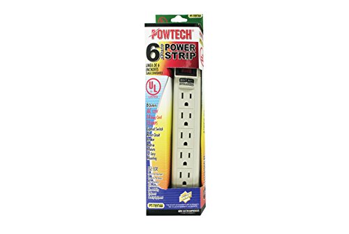 POWTECH UL Listed 6 Outlet Safety Circuit Breaker Heavy Duty Home/Office Power Strip, 14 AWG Cord, 125V, 15AMPS, 1875 Watt, 1.5 Ft Power Cord 7897AA