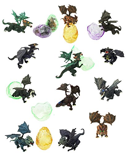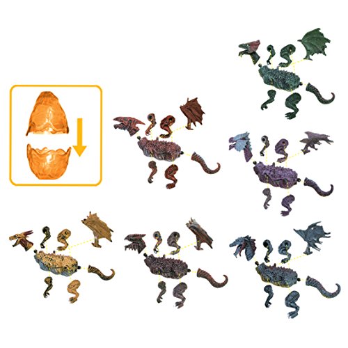 Detailed and bright-colored hell dragon figures, each measures approx. 5". Each egg holds 8 pieces dragon parts (neck, wings, claws and tail) that are easy to assemble and to create various poses.