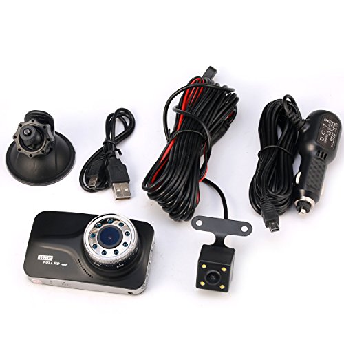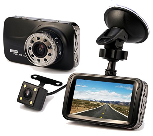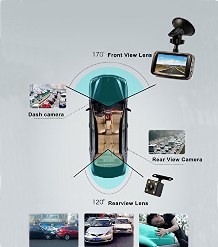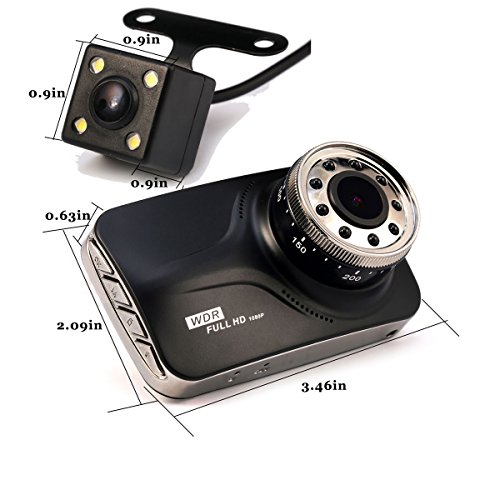 Dash Cam , GERI Black Box dash camera Full HD 1080P 3" LCD Car DVR dual Camera Video Recorder with G-Sensor Night Vision Motion Detection WDR 170° Wide Angle with reversing camera