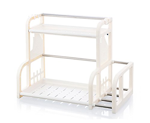- STURDY AND SOLID: A market-tested storage unit for your counter, this kitchen storage rack is made from the best materials including highly durable plastic and rust-resistant stainless steel. The kitchen counter organizer also cleans easily with just a damp cloth, so it should never be a problem keeping it well-maintained for years.