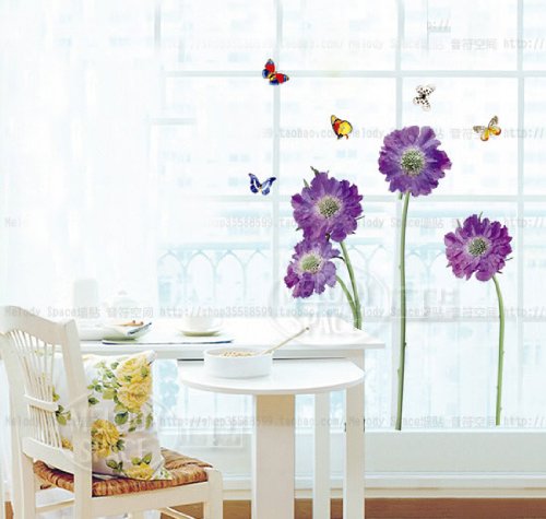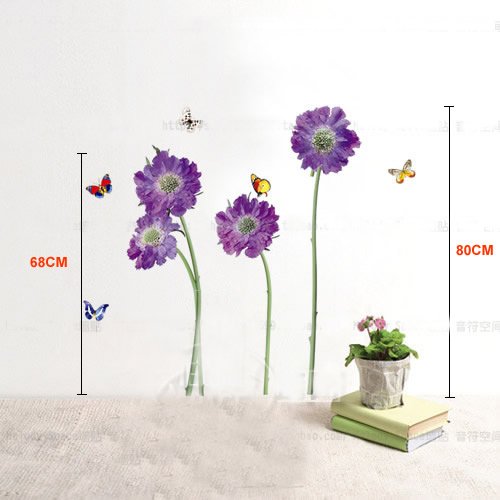 - Title : BONAMART ® purple flower butterfly removable quote vinyl room wall decals stickers LD610