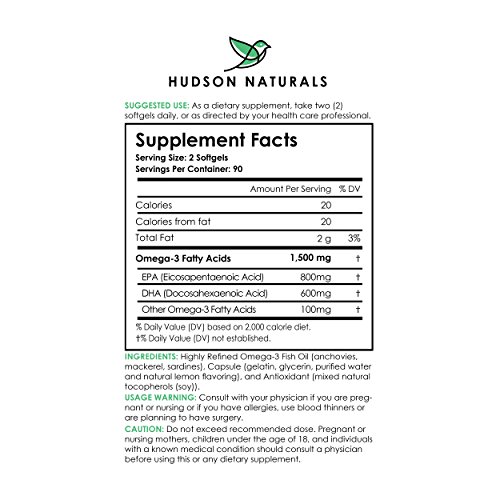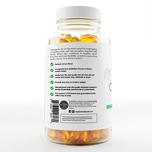 -. Title : Hudson Naturals Omega 3 Fish Oil With EPA and DHA Essential Fatty Acids, Pure, Maximum Strength 180 Softgels | Lemon Flavor, Burpless With No Fishy Aftertaste, Easy to Swallow, Mercury Free
