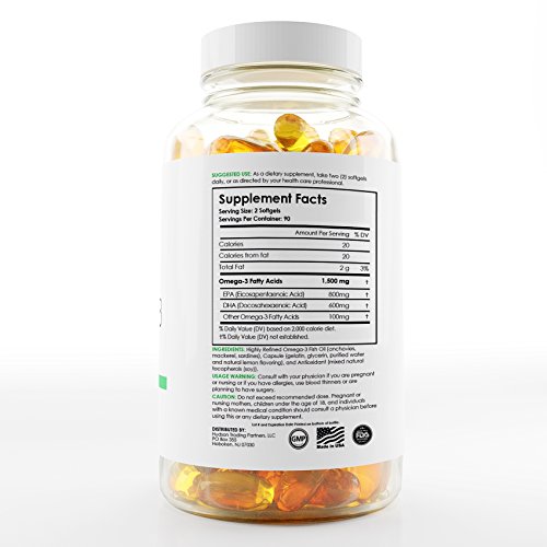 -. Feature : High-Potency Supplement: Contains the highest levels of EPA (800 mg) and DHA (600 mg) per serving available on the market today! Just take two premium capsules per day. / Supports Whole-Body Health: Rich in high-quality omega-3 fatty acids, thought to have anti- inflammatory effects and support a healthy heart, brain, joints, vision, skin, & nervous system. / No Fishy Aftertaste: Extra-strength, concentrated fish oil softgels are infused with natural lemon flavoring to eliminate fishy burps. Smooth pills are easy to swallow. Ideal for men and women. / Ultra-Pure, Free of Contaminants: This GMP-certified supplement is made in the USA and undergoes a comprehensive molecular distillation process. Free of harmful heavy metals. / 100% Money Back Guarantee: If you're not absolutely thrilled with this omega-3-rich fish oil complex, let us know and receive a full, no-questions-asked refund. Buy without risk!