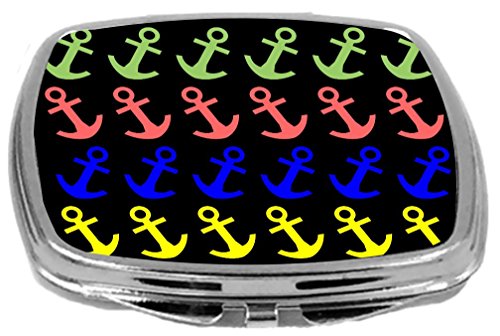 Rikki Knight Compact Mirror on Distressed Wood Design, Multi Colored Anchors on Black, 3 Ounce