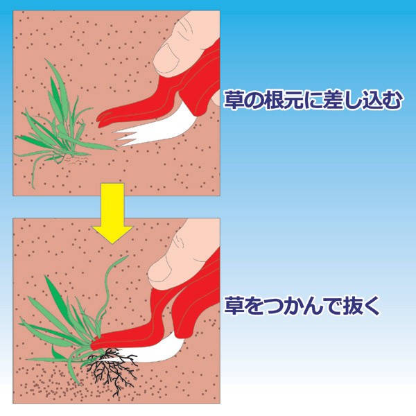 雑草を手を汚さずに簡単に取れるグッズです。トングのような形状で、草に先を差し込み指でつかみ取る感覚で草取りがカンタンにできます。とても軽く、はさみこむ力も軽い力で挟み込めるので、女性でも作業がしやすくなってます。大きめの草などは、根元に差し込んでからテコの要領でカンタンに根起こしができます。草取り楽だを横にしてトングでつかむようにして草を取ることも出来ます。毛虫や芋虫やナメクジのような害虫もつかんで捨てることができます。