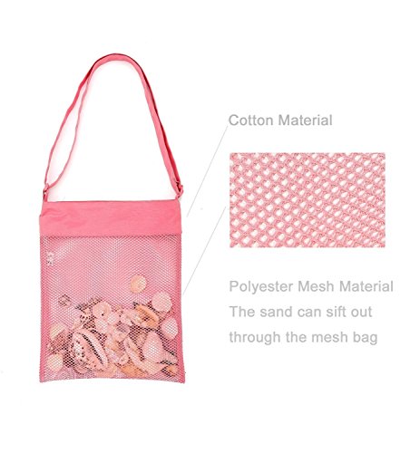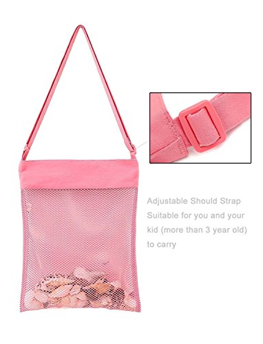 -. Feature : Great beach bag - Perfect for collecting seashells, pebbles, crab claws and more while walking along the Sand. The sand can sift out through the mesh bag so it will not a mess in the hotel or car. / Convenient To Use - Adustable over the shoulder strap accomodates both young and old. / High Quality Material- 100% Cotton & Polyester Mesh, CE certification, safe to use / User-friendly Design Bags - Velcro pocket keep your child's treasure in the beach mesh bag better / Reusable Mesh Beach Toy Bag - Handwash is recommended, and hang to dry. Not for children under 3 years old.