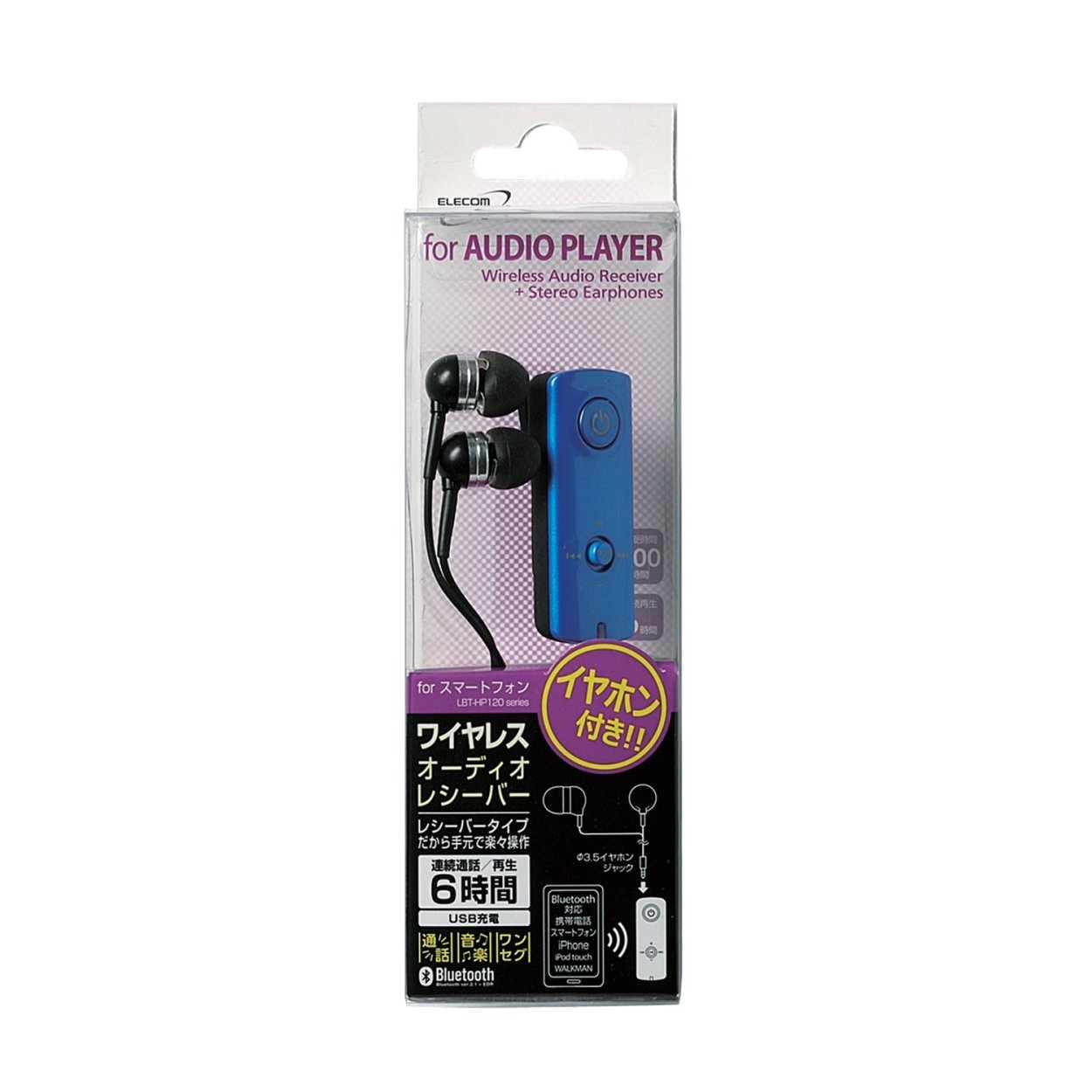 Bluetooth (R) audio receiver LBT-AR 120 is a product that included earphones.